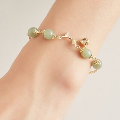 Be the first to review “Buddha Stones 14K Gold Plated Hetian Jade Golden Rose Flower Luck Chain Bracelet”