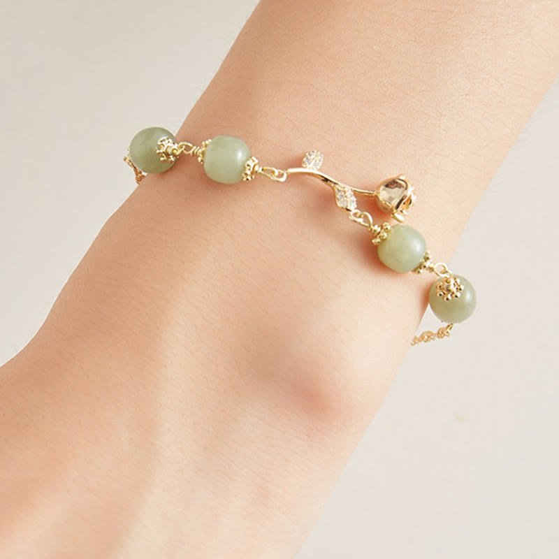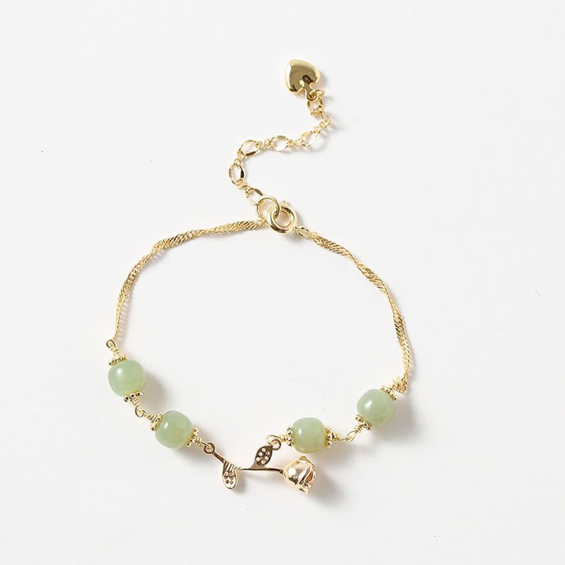 Buddha Stones 14K Gold Plated Hetian Jade Golden Rose Flower Luck Chain Bracelet