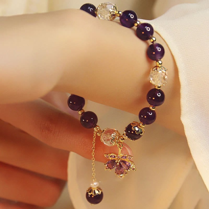 Experience the soothing and healing power of Buddha Stones’ Natural Amethyst Bracelet. Meticulously crafted. this bracelet combines the beauty of amethyst with the charm of a maple leaf. Amethyst is known for its healing properties. promoting tranquility and balance. This gorgeous purple gemstone promotes spiritual awareness and inner peace. making it an ideal gift for promoting well-being.