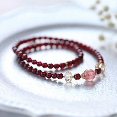 Be the first to review “Buddha Stones 14K Gold Plated Natural Garnet Strawberry Quartz Stability Double Wrap Bracelet”