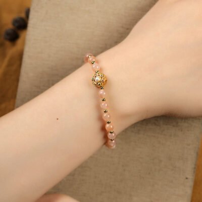 Be the first to review “Buddha Stones 14K Gold Plated Natural Strawberry Quartz Labradorite Sun Stone Fu Character Positive Charm Bracelet”