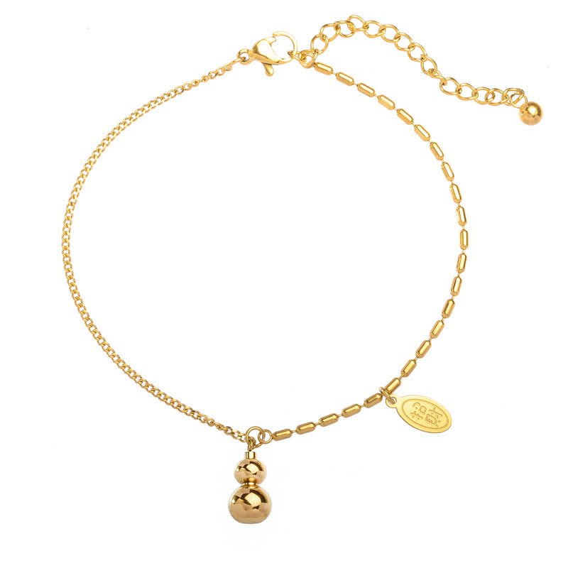 Discover our Buddha Stones 18k Gold Lucky Gourd Design Wealth Buckle Anklet. a symbol of prosperity and luck. Crafted with copper. it balances your spiritual energies. attracts wealth. and connects you with higher dimensions. Embrace self-care and healing while enhancing your overall abundance with this elegant and meaningful accessory.