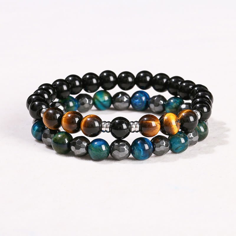 Buddha Stones 2Pcs Hematite Tiger Eye Blue Tiger Eye Powerful Bracelet Set