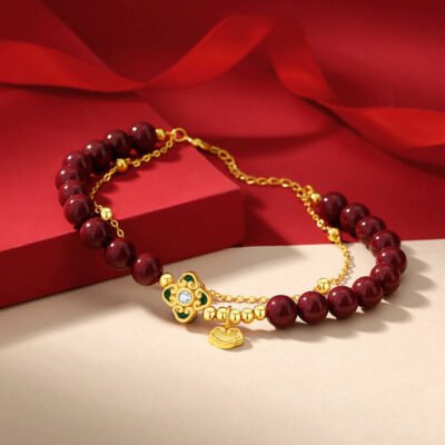 Be the first to review “Buddha Stones 925 Sterling Silver Natural Cinnabar Four Leaf Clover Flower Blessing Chain Bracelet”