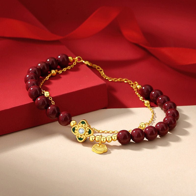 • Bead Size: Cinnabar 6mm. Lock of Good Wishes 7*7mm. Four Leaf Clover 10*10mm