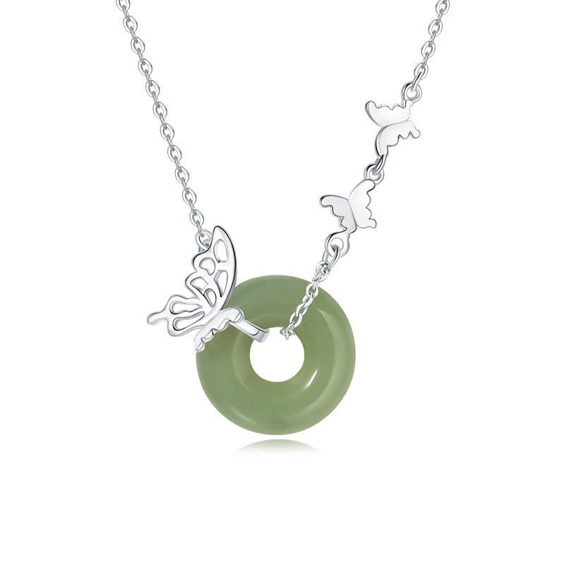 Peace Buckle Butterfly Bracelet Necklace Pendant symbolizes peace. fortune. and transformation. The jade peace buckle brings inner tranquility and protection. The sterling silver chain is adorned with three butterflies. representing freedom. rebirth. and continuous growth. Ideal for those wishing for emotional balance. steady prosperity. and auspicious blessings in both personal and professional life.💕