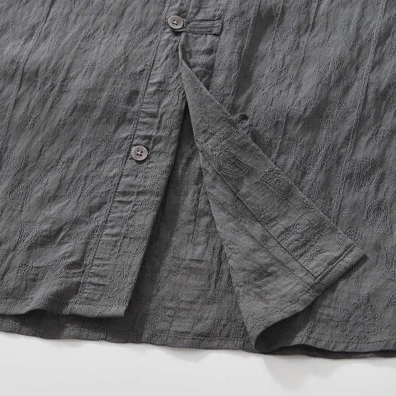 Buddha Stones Commute Plain Buttons Men’s Short Sleeve Shirt With Pockets