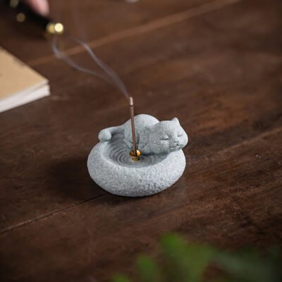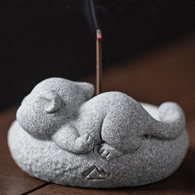 Buddha Stones Cute Lazy Standing Cat Healing Incense Burner Desk Decoration