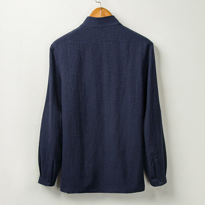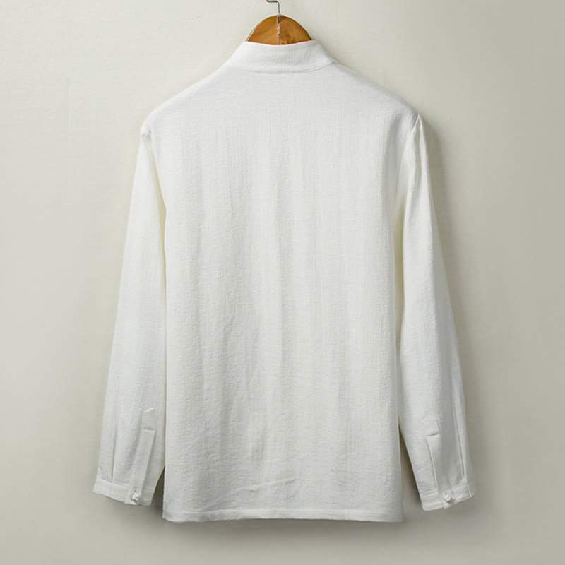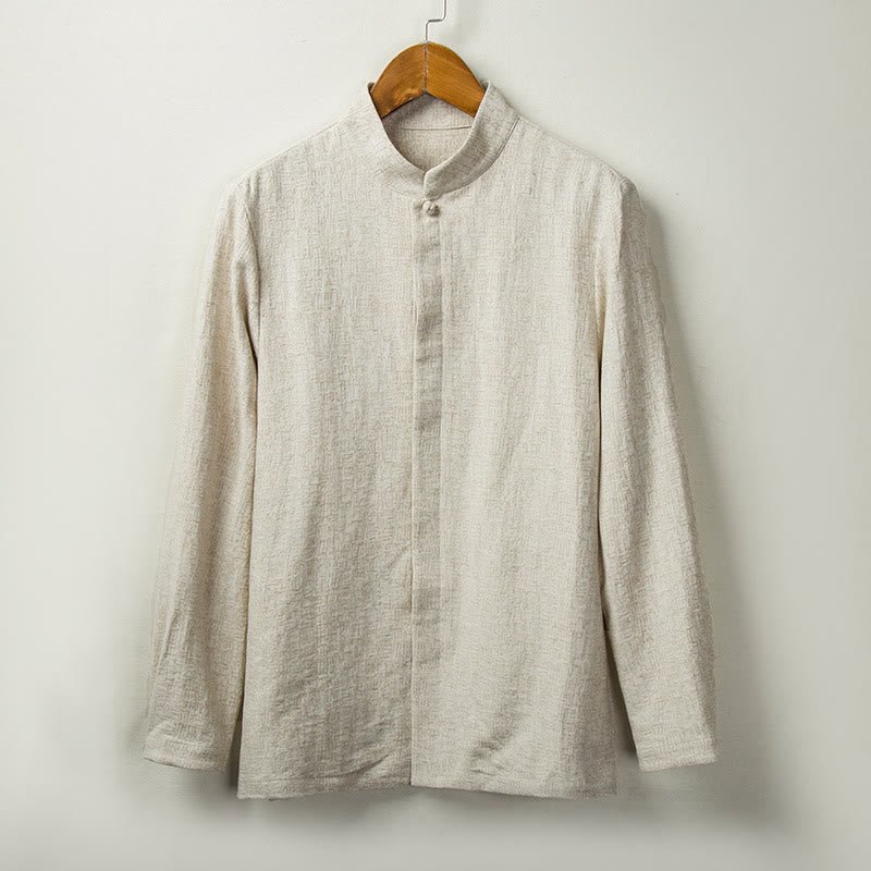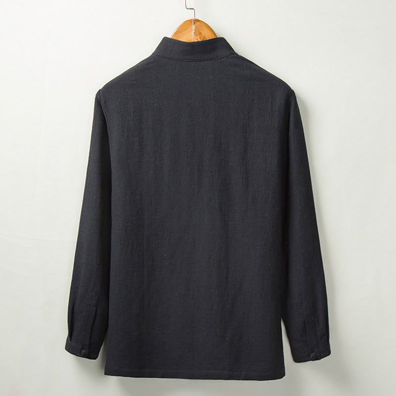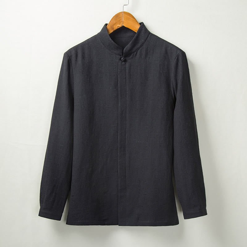 Buddha Stones Fall Solid Long Sleeve Button Shirt Cotton Linen Men Clothing