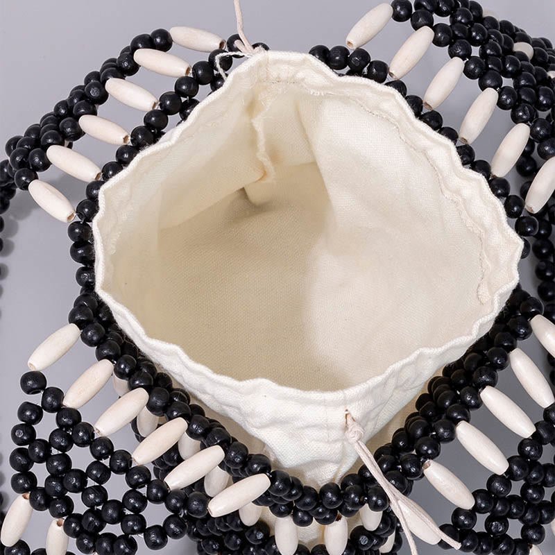 Buddha Stones Hand-woven Round Wooden Beads Handbag