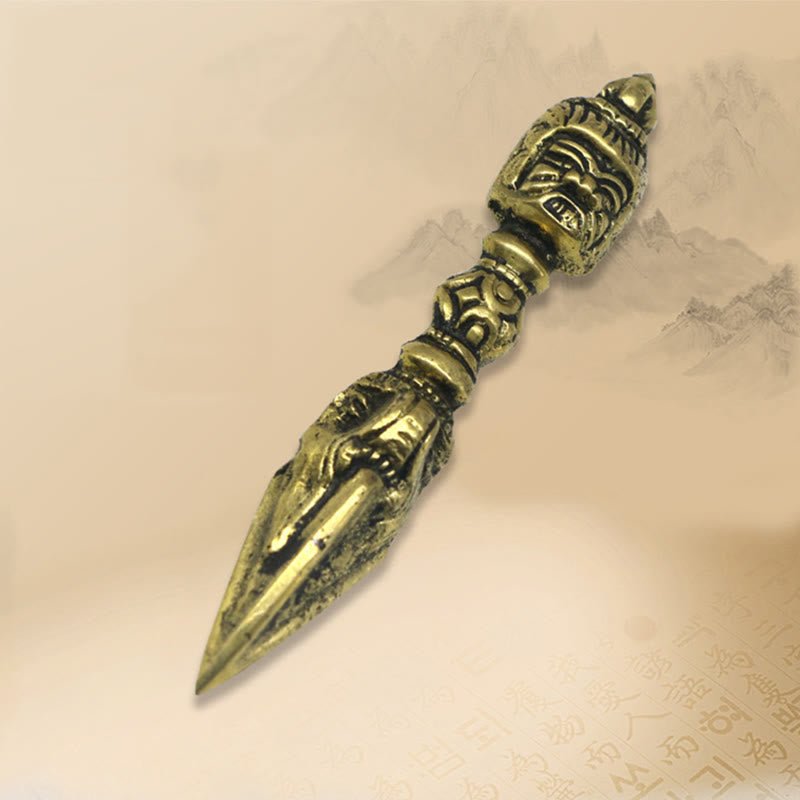 Embrace spiritual enlightenment with Buddha Stones Handmade Nepal Small Vajra Dorje. Crafted from copper. this engraved decoration symbolizes divine power and strength. inviting positive energy and transformative vibrations into your sacred space. Experience the profound significance of this exquisite piece.