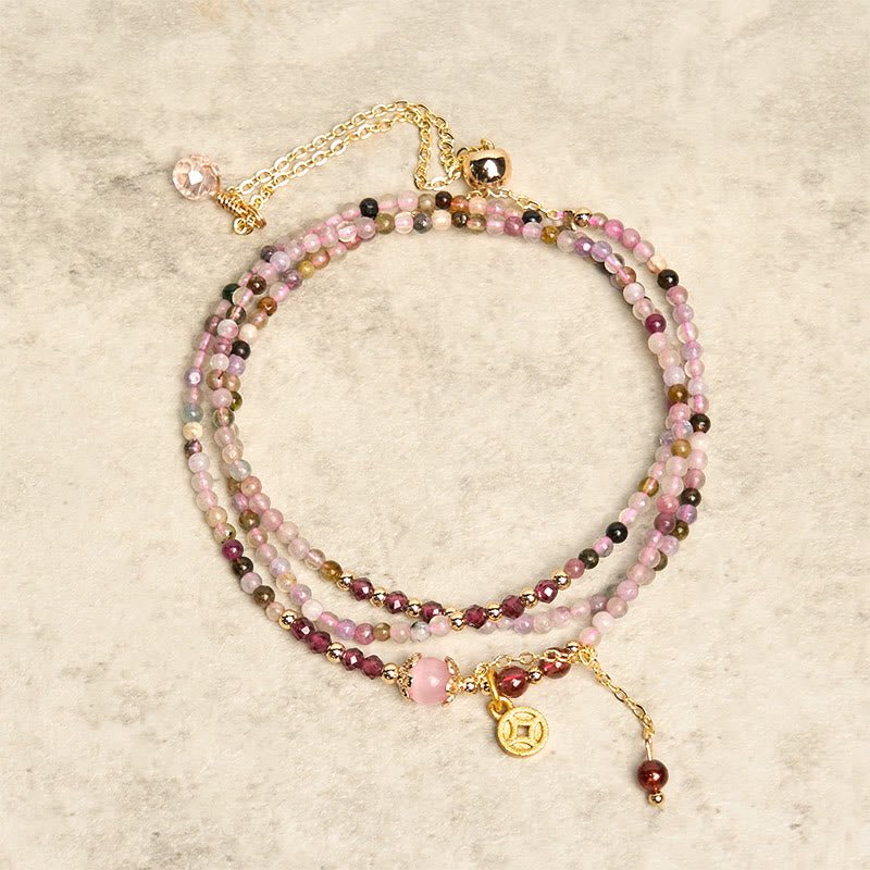 Buddha Stones 2.5 mm Irregular Beads Colored Tourmaline Coin Wisdom Bracelet