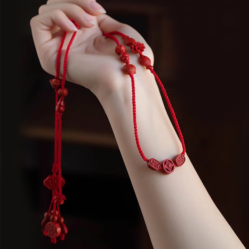 Buddha Stones Natural Cinnabar Calm Blessing Red String Belly Chain