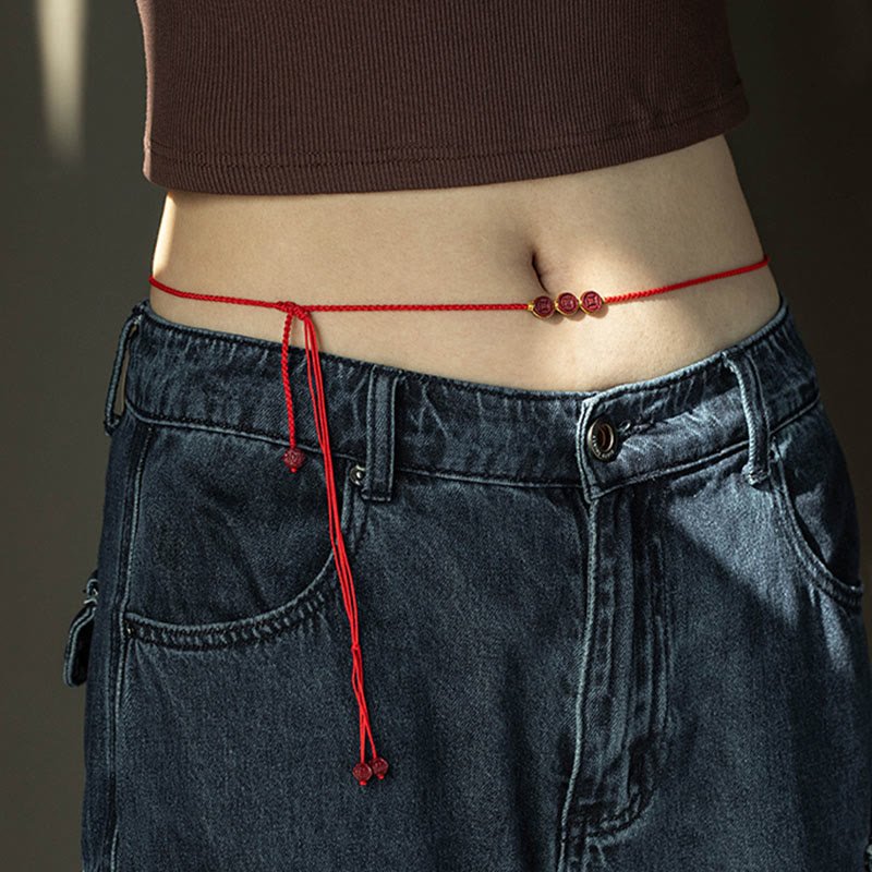 Buddha Stones Natural Cinnabar PiXiu Calm Blessing Red String Belly Chain Belly Chain BS 3