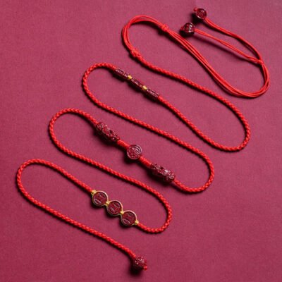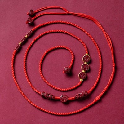 PiXiu Blessing Red String Belly Chain combines symbolism and tranquility. featuring a central cinnabar bead with the “Fu” character. flanked by two cinnabar PiXiu figures. Known as symbols of protection and fortune. PiXiu enhance the chain’s calming. balanced energy. This cinnabar and red string belly chain serves as a meaningful piece. promoting inner peace and attracting blessings. while reminding the wearer of strength and good fortune.💕