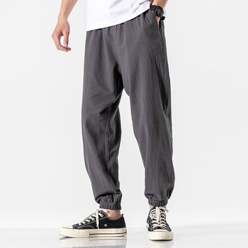 Buddha Stones Solid Color Drawstring Cotton Men’s Pants With Pockets