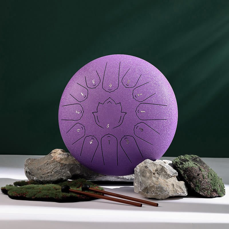 The Buddha Stones Lotus Pattern Drum is an enchanting addition to any mindfulness practice. This 13-note. 12-inch steel tongue drum. adorned with a lotus pattern. produces ethereal and calming sounds ideal for yoga. meditation. and sound healing sessions. Its beautiful design and deep. resonant tones make it a favorite for those seeking a peaceful ambiance. Perfect for both experienced musicians and those new to percussion. it enhances the spiritual experience of its users. fostering relaxation and inner harmony.