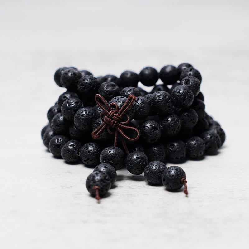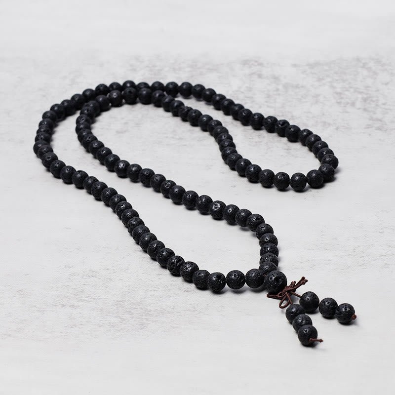 Buddha Stones 108 Natural Lava Rock Beads Prayer Mala Bracelet Necklace