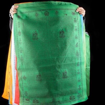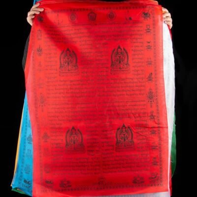 • Each flag features a large variety of prayers surrounding the center image of lungta. a Windhorse. Lungta is also the Tibetan word for ‘prayer flag’. Circulates a feeling of Harmony and increases the Spiritual Atmosphere. It Brings Spiritual Vibration carried by the wind across the house.