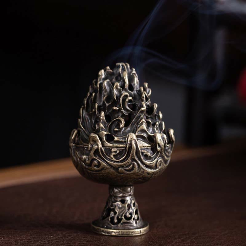 Buddha Stones Tibetan Mini Mountain Pattern Meditation Copper Alloy Incense Burner