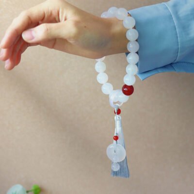 Be the first to review “Buddha Stones White Agate Red Agate Luck Wrist Mala Tassels Pocket Mala Car Decoration”